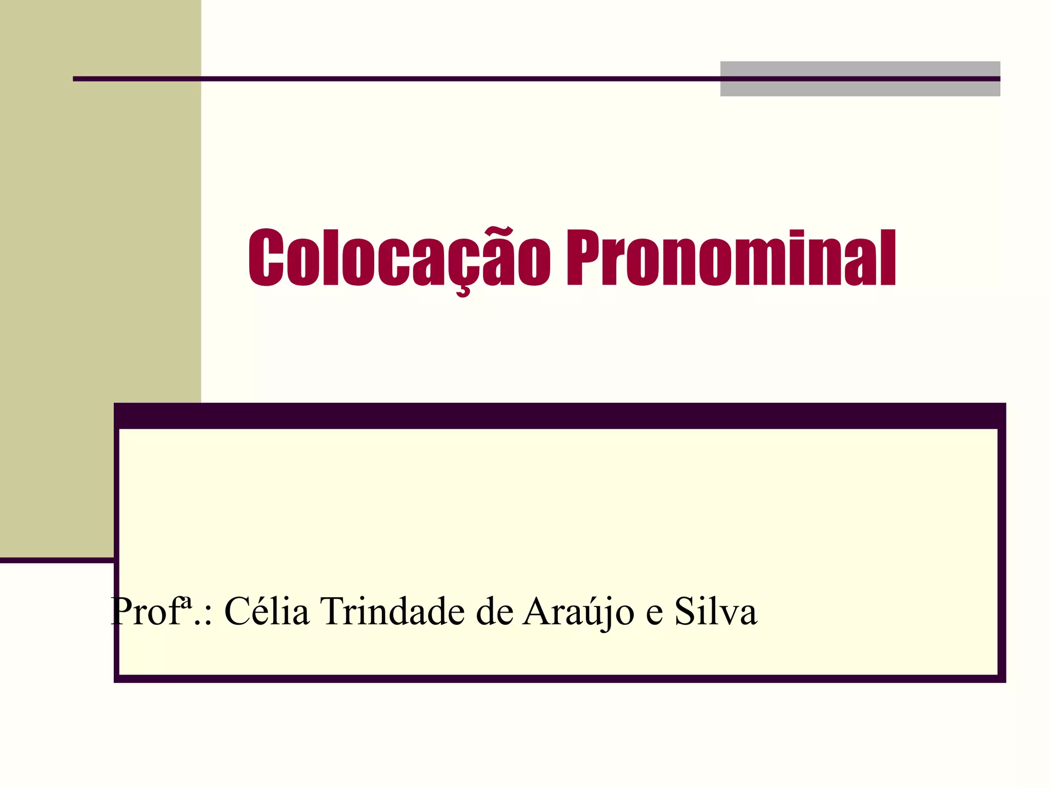 1) O documento discute as regras gramaticais para a colocação pronominal em português.