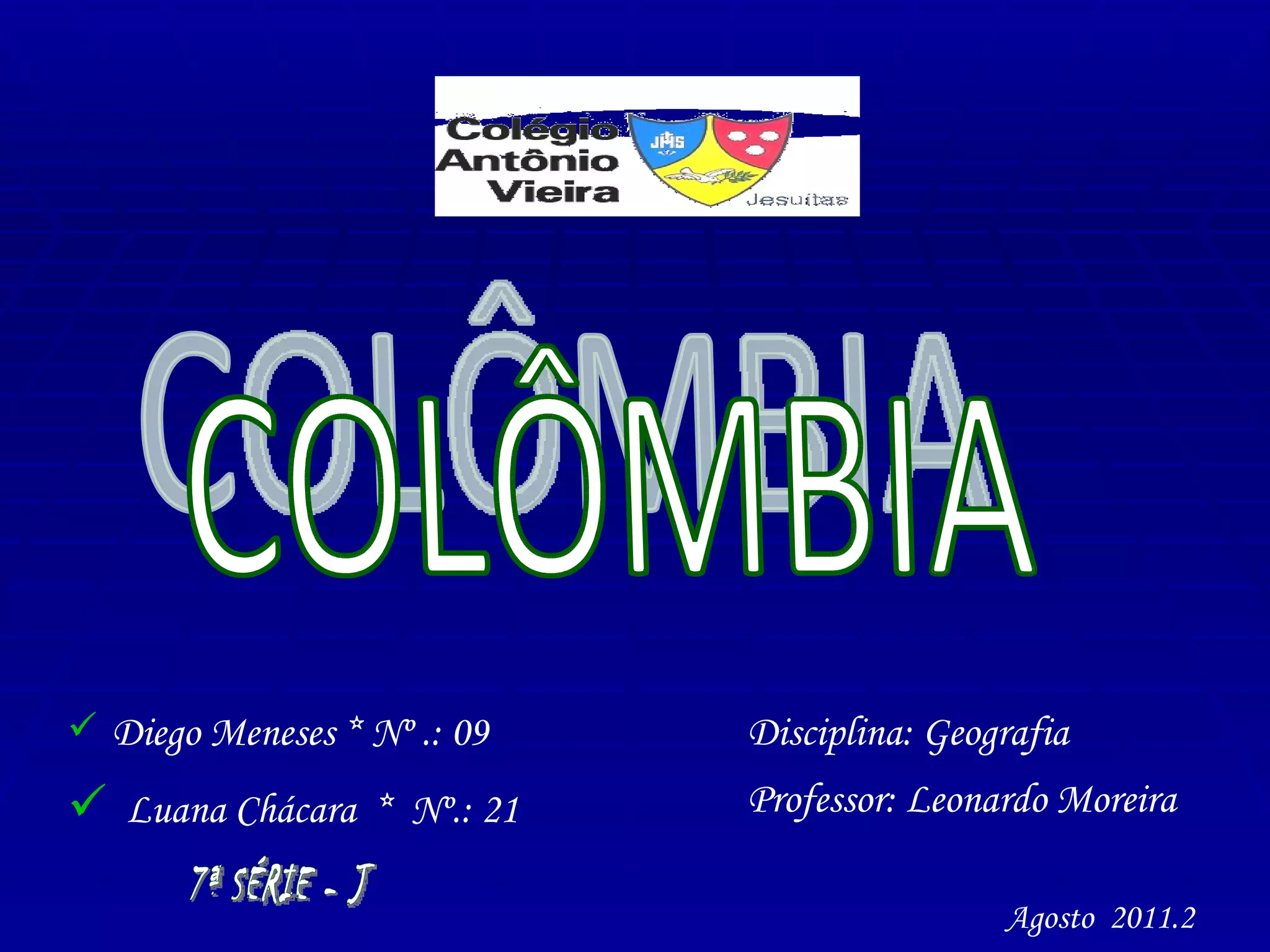O documento descreve a geografia, governo, economia e situação do narcotráfico na Colômbia. A Colômbia localiza-se na América do Sul e possui clima equatorial, relevo montanhoso e rios importantes como o Magdalena. É uma república presidencialista com IDH médio e economia baseada em agricultura e mineração. Grupos como as FARC se envolveram com o narcotráfico, que responde por grande parte do PIB colombiano apesar dos esforços contra as drogas.
