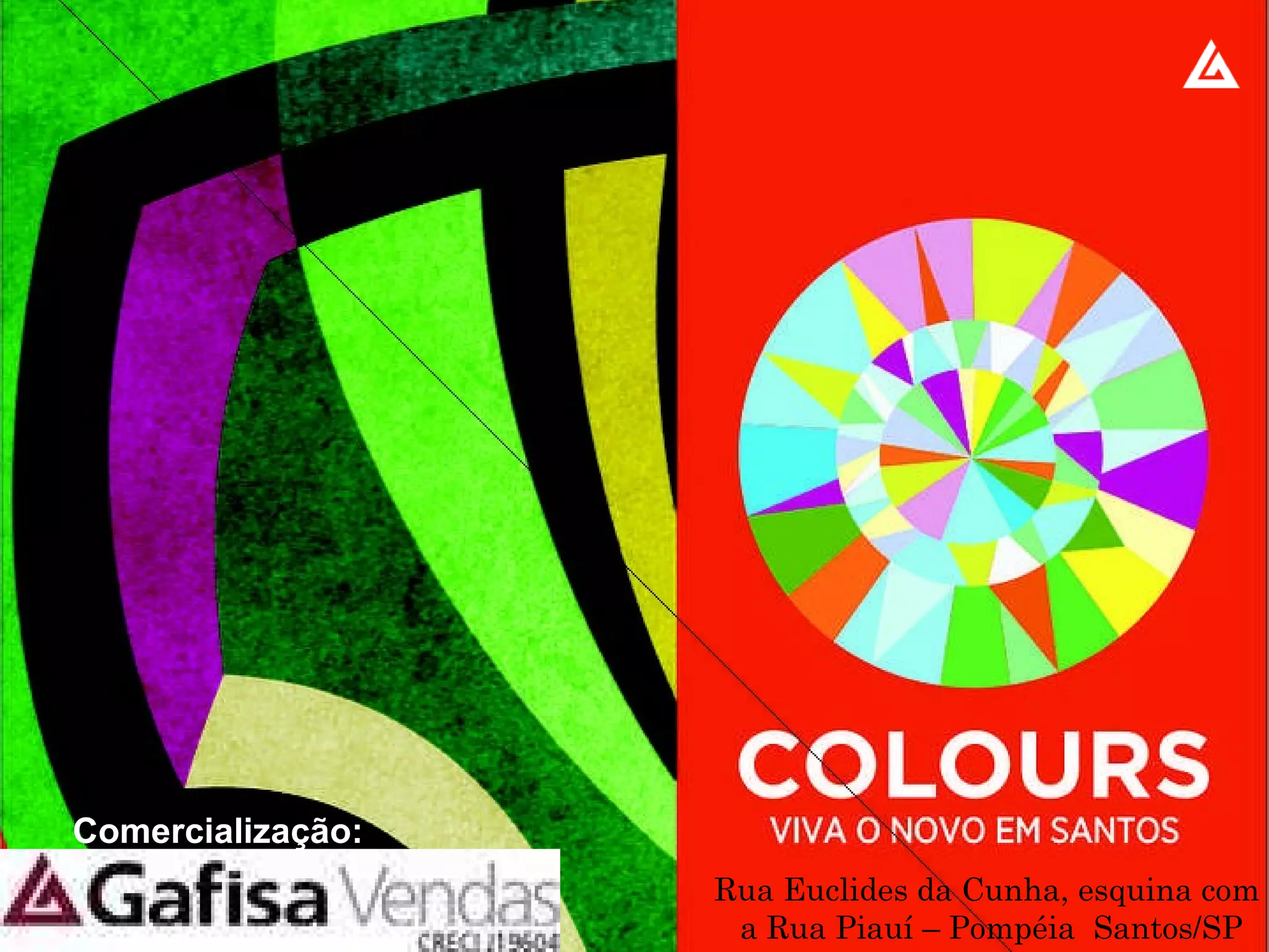 O Colours é um novo empreendimento residencial localizado no bairro da Pompeia em Santos, São Paulo. O projeto oferece apartamentos de 2 e 3 dormitórios com áreas entre 65m2 e 87m2, além de coberturas duplex, e conta com diversas áreas comuns e lazer. O empreendimento está localizado próximo a serviços e comércio da região.