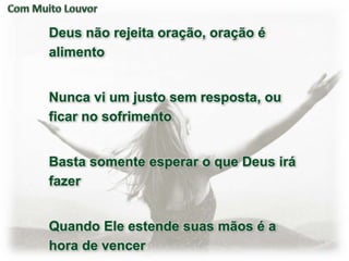 O documento enfatiza que a oração é alimento para os justos e que Deus nunca rejeita a oração, apenas espera o momento certo para agir. Também enfatiza que os fiéis devem continuar louvando a Deus em todos os momentos, mesmo na dor ou sofrimento, pois o louvor abre os céus.