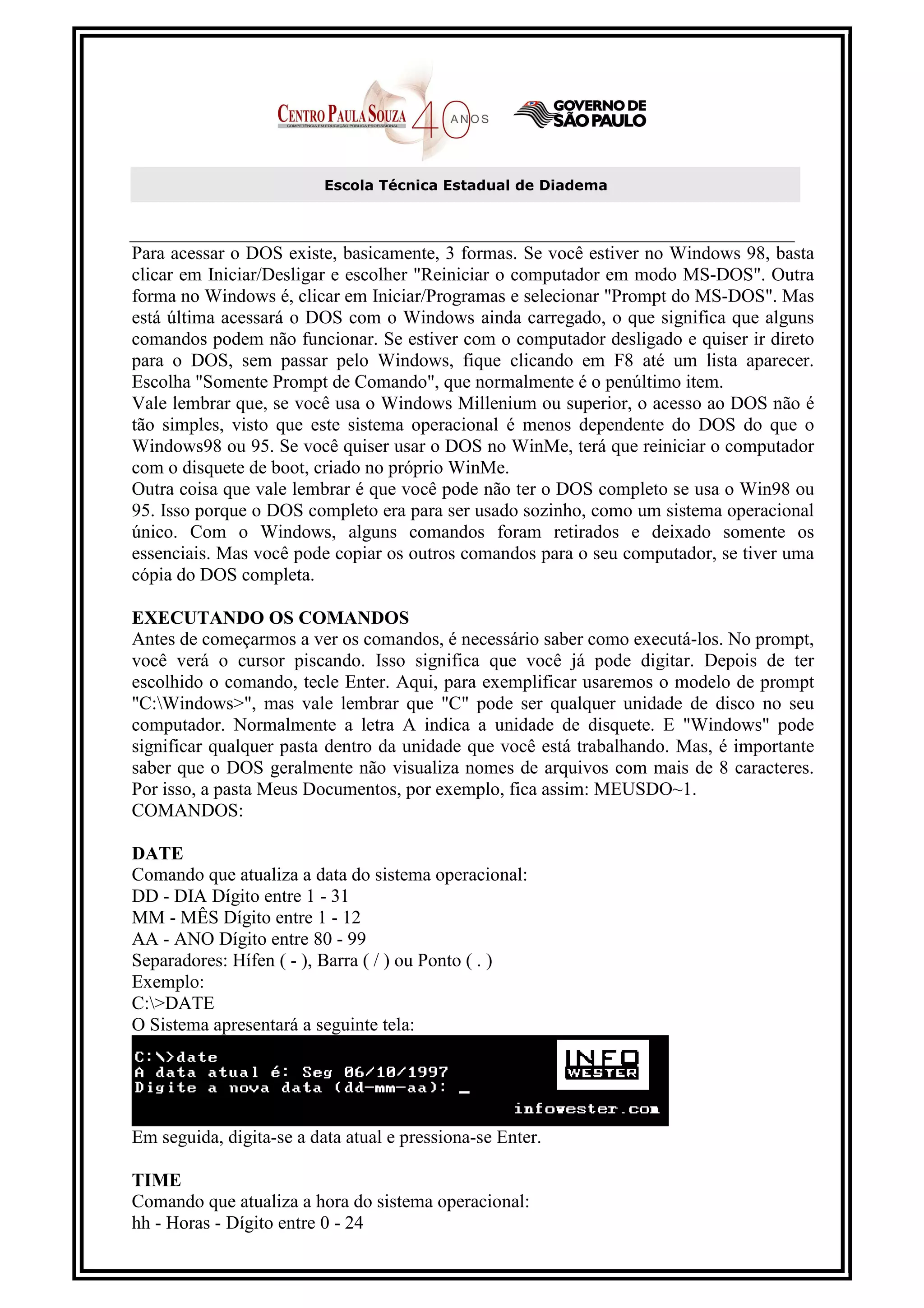 Vale lembrar que, se você usa o Windows Millenium ou superior, o acesso ao DOS não é