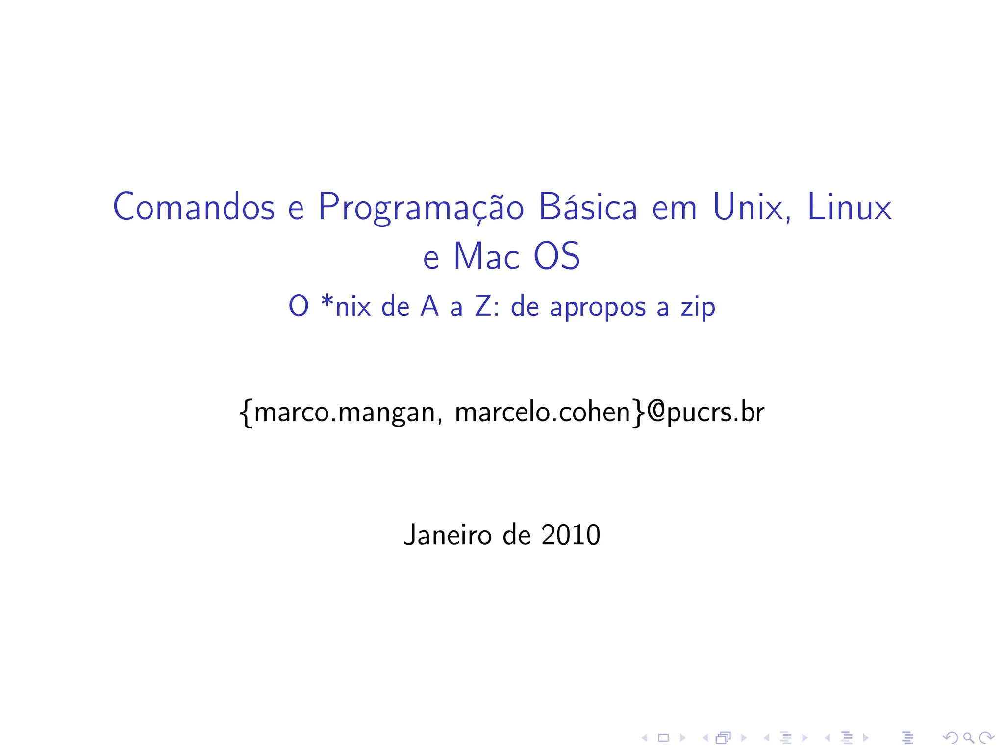 O documento é um guia abrangente sobre comandos e programação básica em sistemas Unix, Linux e Mac OS, abordando desde a história dos sistemas até comandos essenciais e automação de tarefas. Destinado a desenvolvedores, pesquisadores e alunos de graduação, o curso ensina a resolver problemas e otimizar tarefas cotidianas com um currículo que inclui exercícios práticos e exemplos de projetos. Além disso, o texto promove a autonomia no aprendizado sobre o ambiente *nix com uma variedade de comandos e práticas recomendadas.