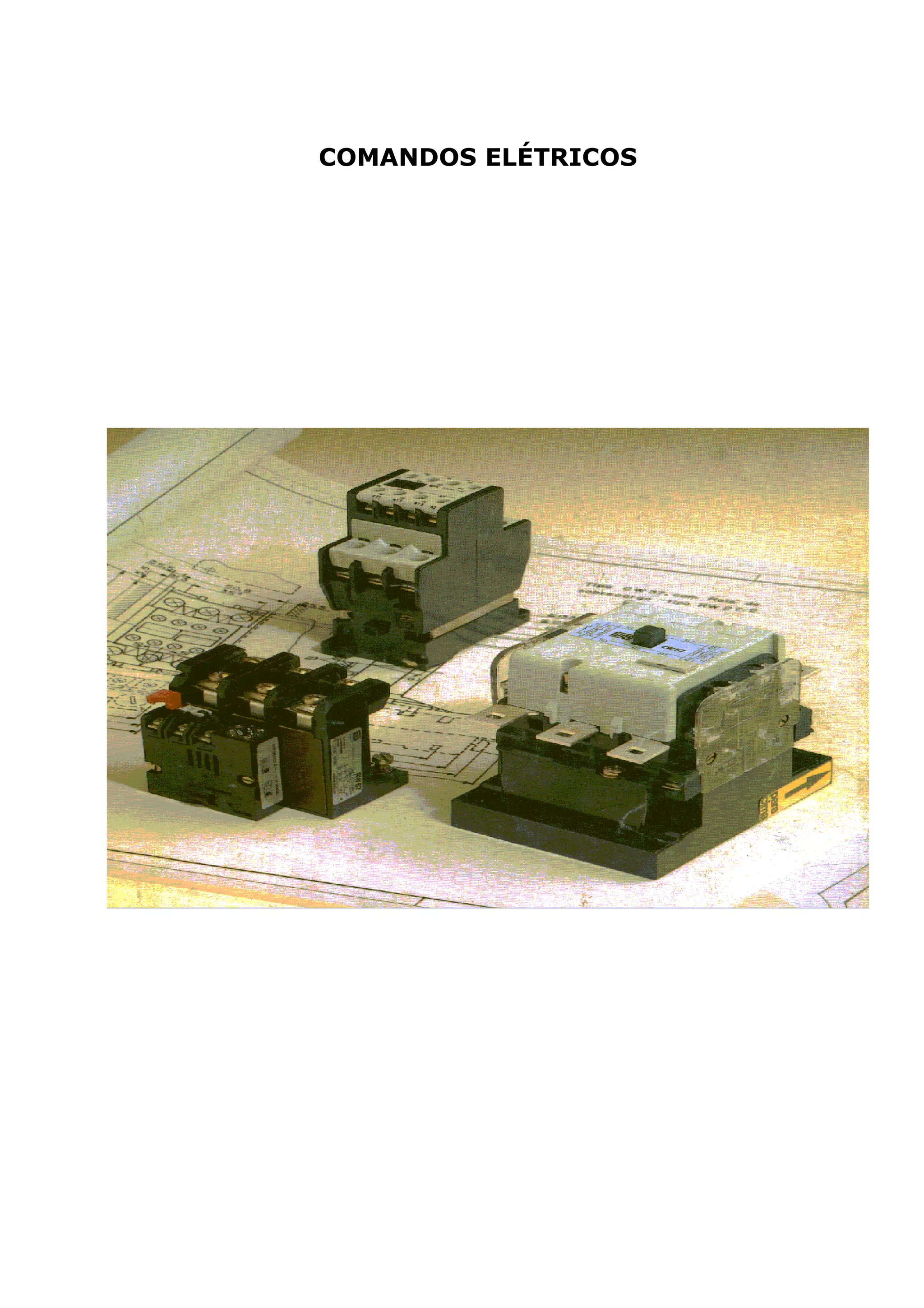 1) O documento discute vários tipos de comandos elétricos, incluindo contatores, cargas trifásicas em estrela e triângulo, motores monofásicos e trifásicos.