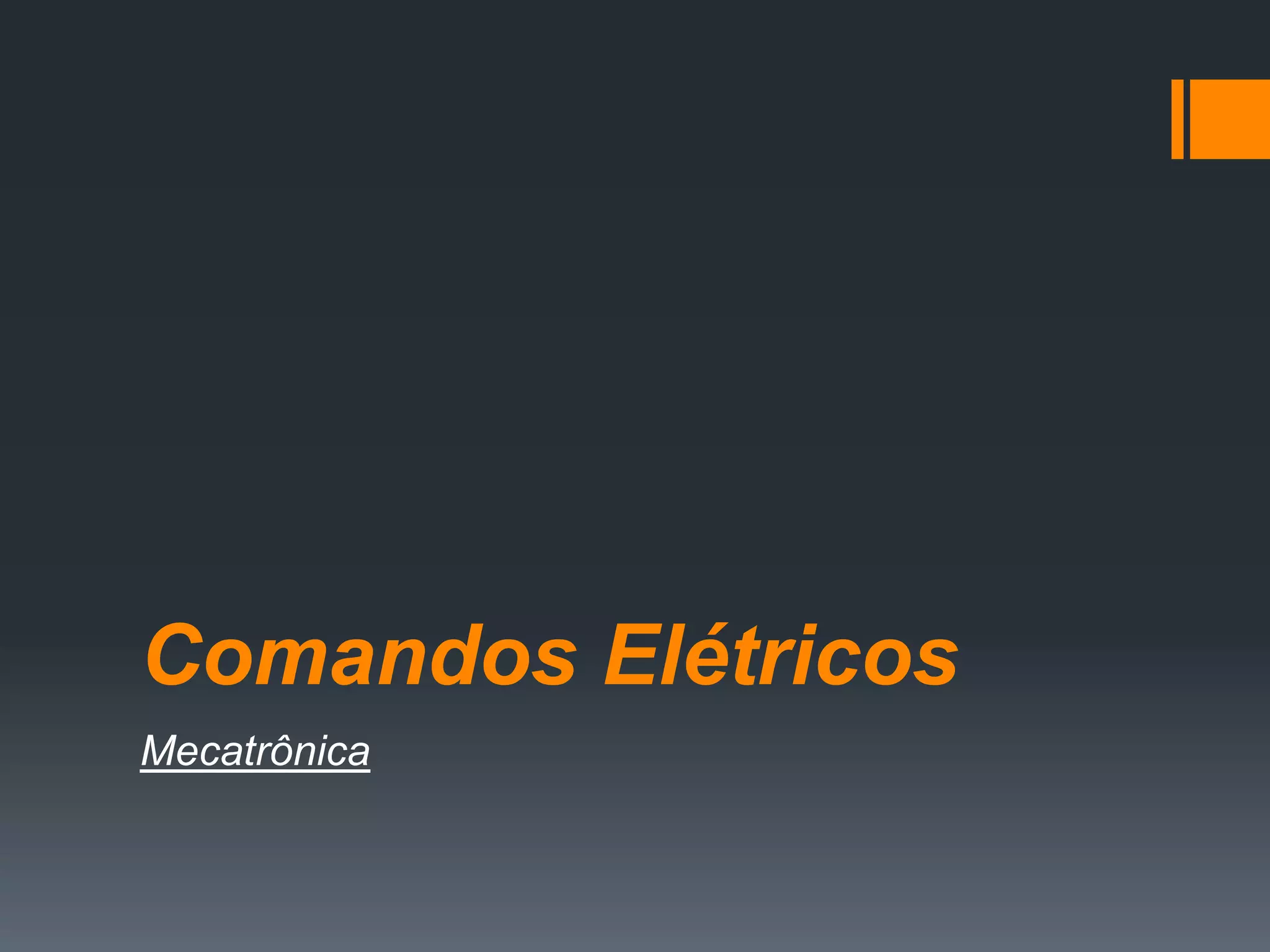 O documento descreve os principais componentes e conceitos de comandos elétricos, incluindo: 1) O comando elétrico controla dispositivos através de contatos magnéticos, térmicos ou mecânicos; 2) Contatos podem ser abertos ou fechados e controlam a passagem de energia; 3) Dispositivos como botoeiras, sensores e pressostatos emitem sinais para controlar circuitos.