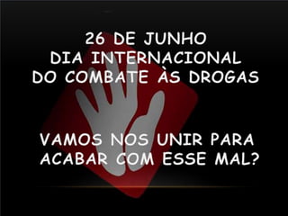 O documento apresenta os objetivos e público alvo de uma palestra sobre drogas, definindo o que são drogas e classificando-as em lícitas e ilícitas. A palestra visa alertar estudantes sobre os riscos do uso de drogas à saúde.