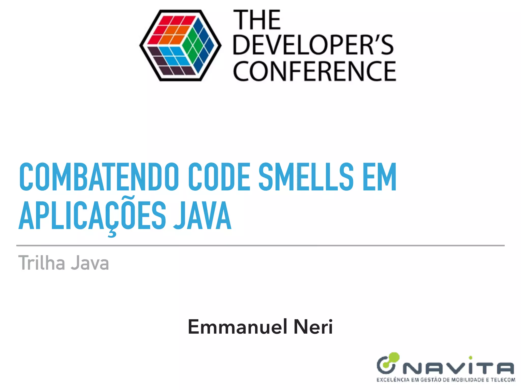 O documento aborda a identificação e resolução de 'code smells' em aplicações Java, enfatizando princípios de design como SOLID e práticas para manter código limpo e legível. São apresentados exemplos práticos de refatoração e como evitar duplicações e excessos de complexidade. Além disso, recomenda ferramentas como SonarQube para ajudar na manutenção do código.