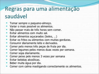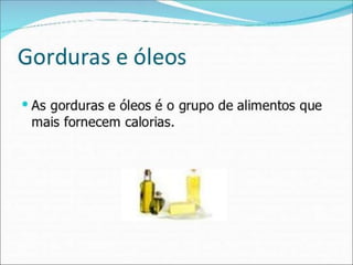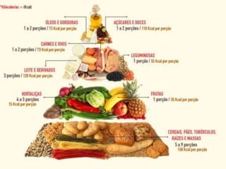 O documento discute conceitos básicos de nutrição e alimentação, incluindo que nutrição é o processo pelo qual o corpo obtém nutrientes de alimentos, que alimentação é o ato de selecionar, preparar e ingerir alimentos, e que uma dieta variada é necessária para fornecer todos os nutrientes necessários, já que nenhum único alimento contém todos eles.