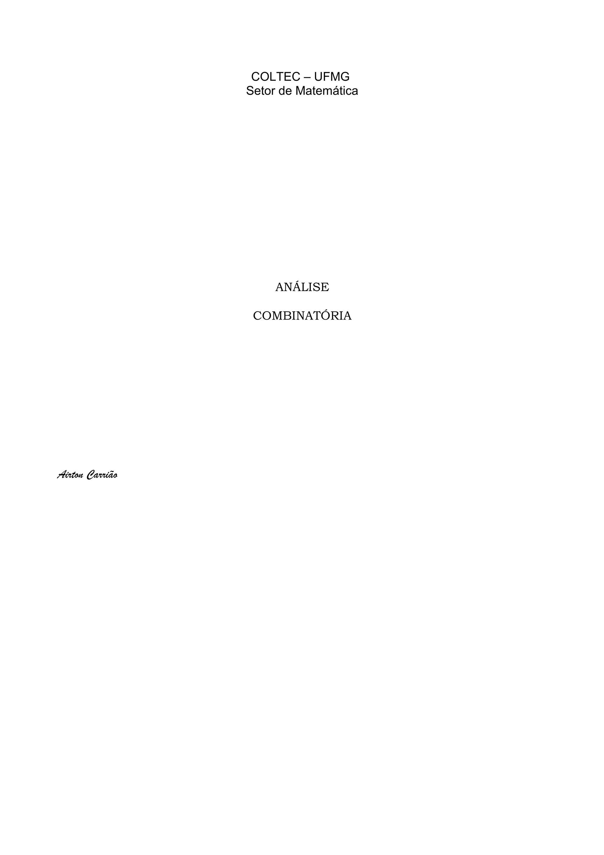 [1] O documento apresenta problemas de contagem, permutação, arranjo e combinação da análise combinatória. [2] Aborda conceitos como número de maneiras de se organizar grupos de pessoas ou objetos de acordo com certas restrições. [3] Fornece expressões para calcular esses arranjos e combinações.