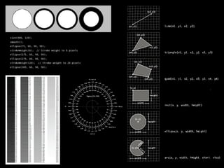 O documento aborda a introdução à programação para artes visuais, explicando conceitos fundamentais como algoritmos, lógica booleana, variáveis e programações orientadas a objetos. Destaca a evolução histórica de interfaces gráficas e linguagens de programação, além de fornecer recursos e links para aprendizado adicional. O texto também enfatiza a modularidade e o uso de funções, condições e arrays na construção de programas eficientes.