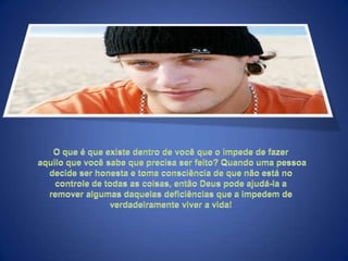 O documento encoraja as pessoas a terem coragem ao enfrentarem suas batalhas internas, lembrando que Deus está com elas e as ajudará. A história de um menino que se agarrou às estacas debaixo d'água enquanto esperava o pai ilustra como Deus quer libertar as pessoas do medo, dizendo "Eu estou com você!". O documento também incentiva as pessoas a saírem da zona de conforto e assumirem riscos com fé em Deus.