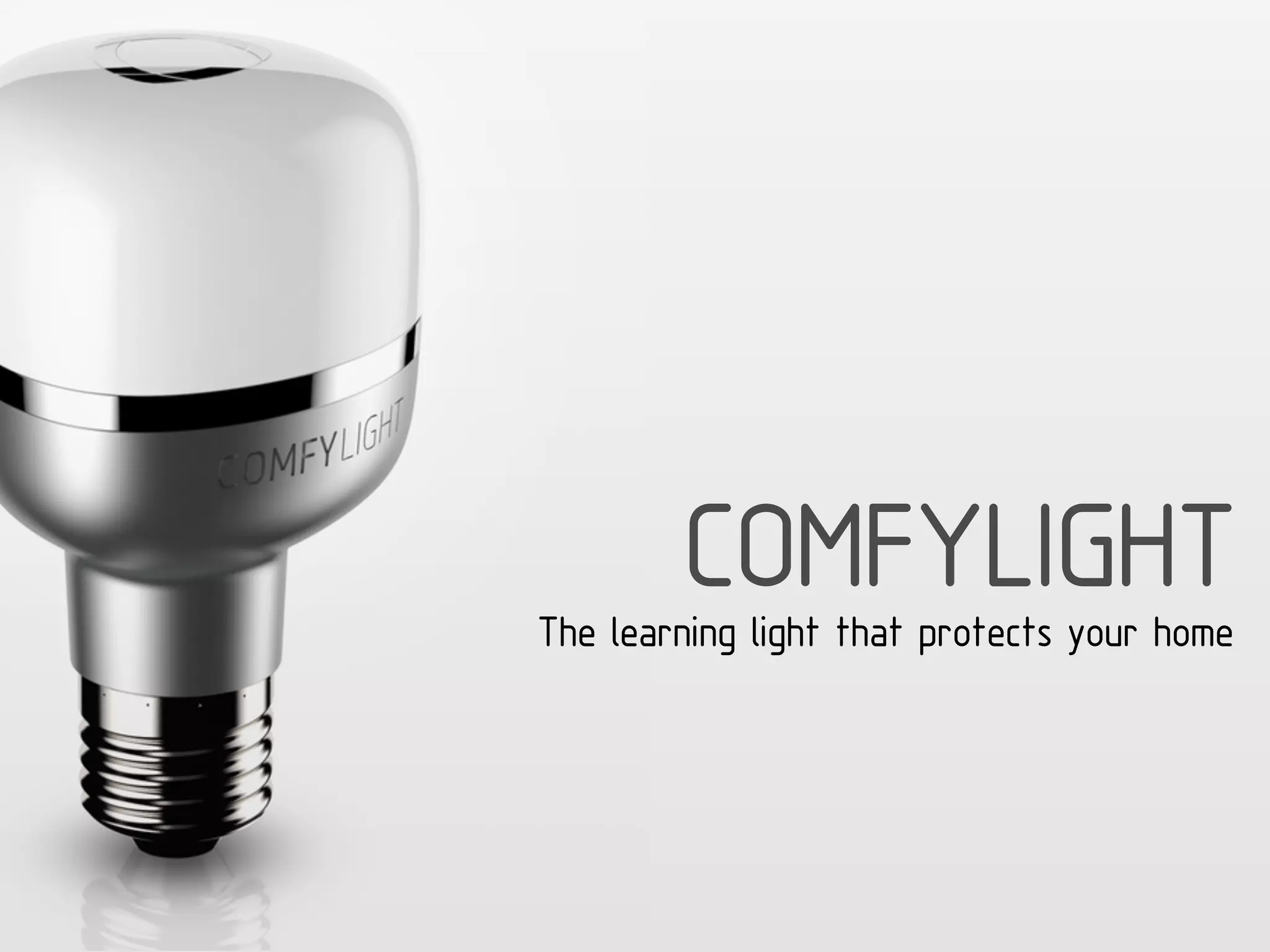 A lâmpada inteligente ComfyLight protege a casa simulando presença e enviando alertas caso detecte invasores. Ela substitui lâmpadas comuns, conecta-se ao wi-fi e ao app para ligar/desligar automaticamente ou remotamente, além de analisar padrões de movimento.