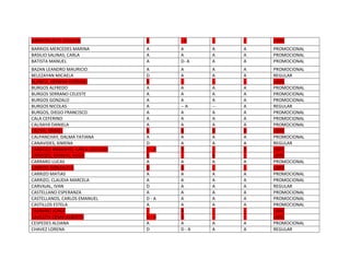 Este documento lista os nomes dos alunos da Comissão de Martes, junto com suas notas nos quatro trabalhos práticos (TP) do ano e uma observação final sobre sua promoção ou situação acadêmica. Contém mais de 150 nomes de alunos com suas respectivas notas e observações.