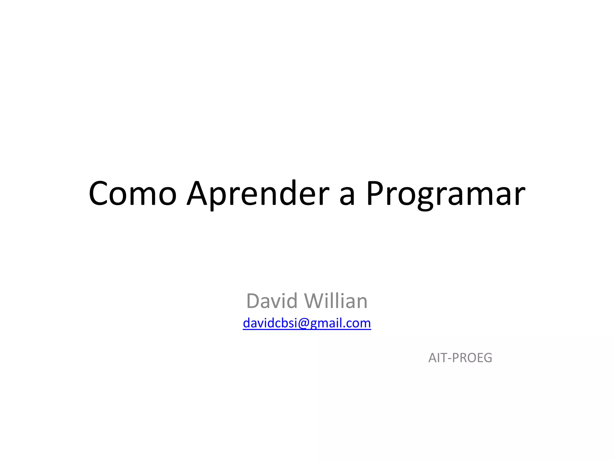 O documento fornece dicas para aprender a programar de forma efetiva, começando com ter um objetivo claro, dominando os fundamentos da lógica e de uma linguagem em particular, analisando códigos de outros e mantendo um hábito constante de aprendizado.