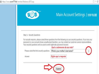 1) O documento fornece instruções passo a passo para se cadastrar em um site de investimentos chamado wcm777.hk.