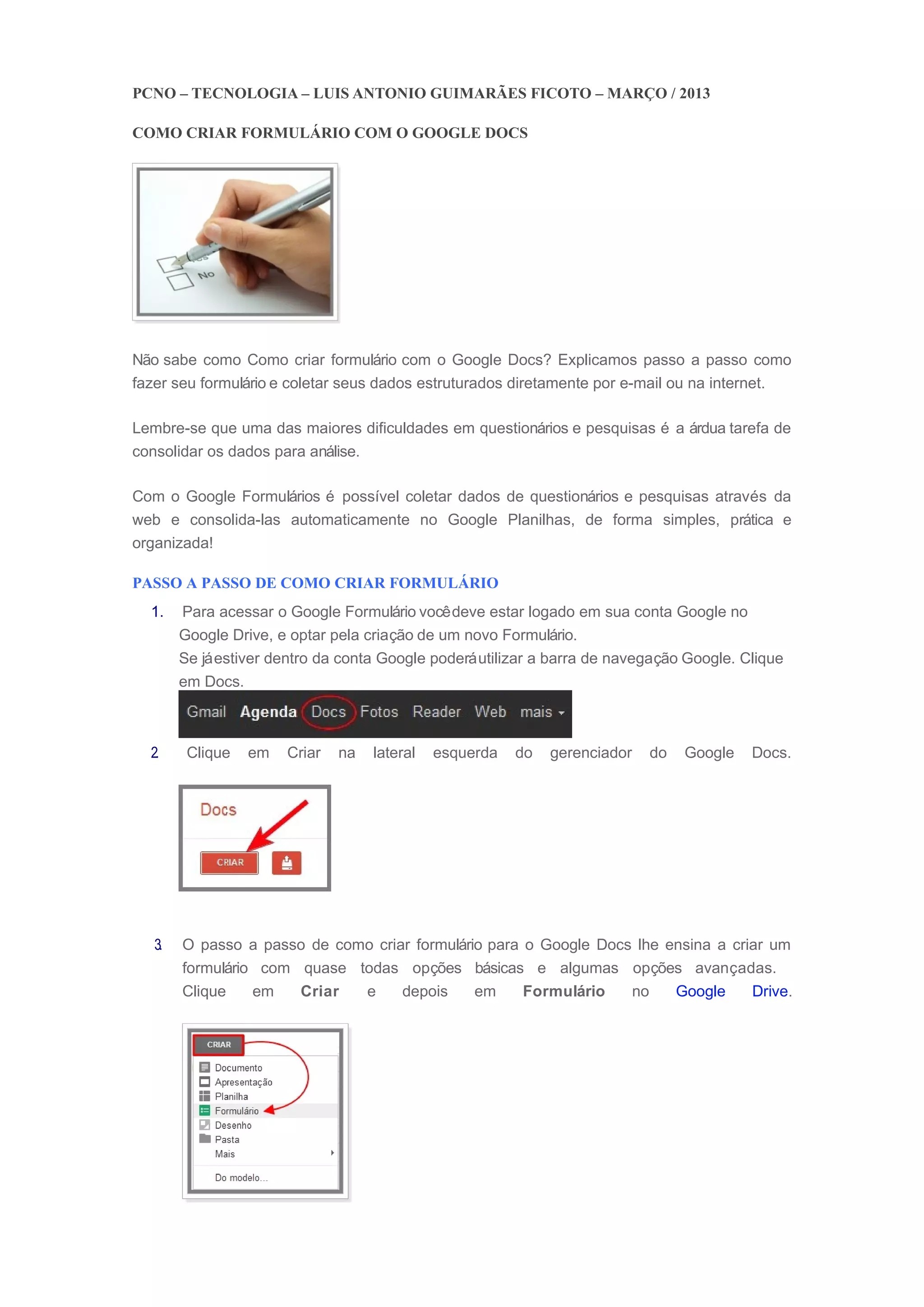 PCNO – TECNOLOGIA– LUIS ANTONIO GUIMARÃES FICOTO – MARÇO / 2013