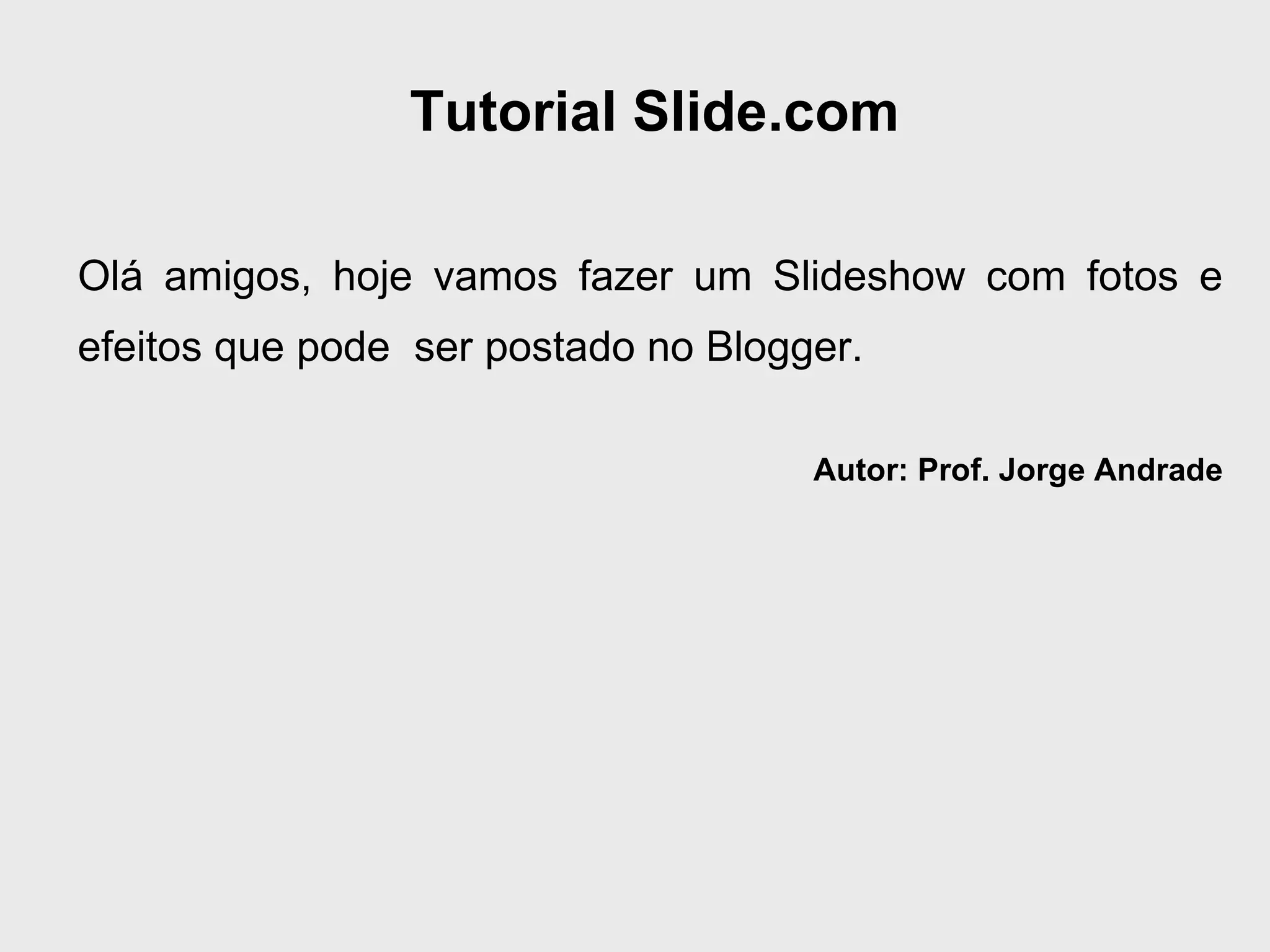 Este documento fornece um tutorial passo-a-passo sobre como criar um slideshow com fotos usando o site Slide.com e postá-lo no Blogger. O tutorial explica como se registrar no Slide.com, selecionar fotos no computador, adicionar legendas, escolher um tema, copiar o código gerado e colá-lo em uma postagem no Blogger.