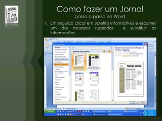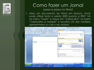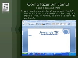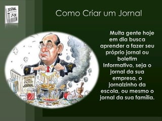 O documento discute a origem do primeiro jornal, afirmando que para muitos historiadores o primeiro jornal de papel foi publicado na China no século VIII d.C. chamado Notícias Diversas, embora a informação não seja comprovada absolutamente. A China também comemorou o milenário do jornal Ta Kink Po em 1908. O Egito antigo também tinha versões primitivas de jornais na época.