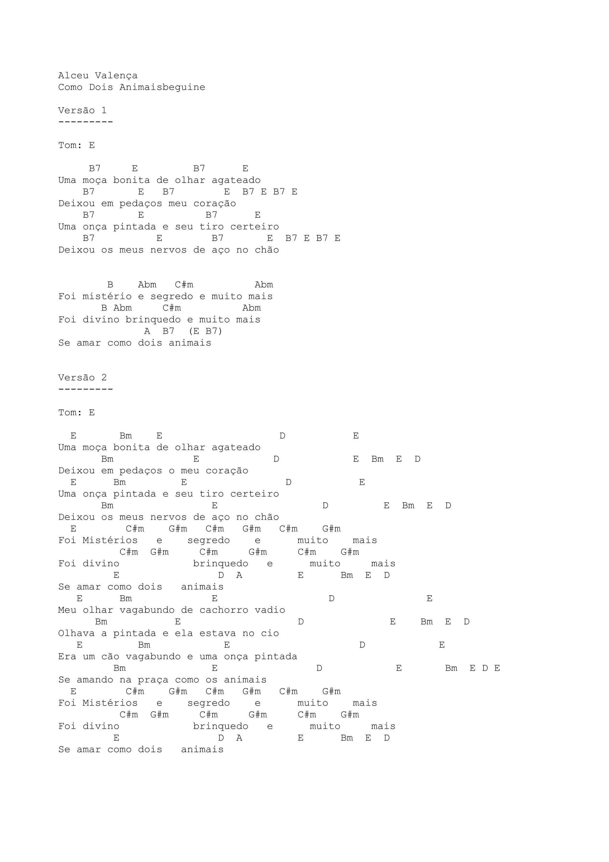 A música descreve o encontro amoroso entre uma moça e um homem comparando-o ao amor entre dois animais - uma onça pintada e um cachorro vadio. O refrão diz que se amaram como animais, de forma selvagem e instintiva. A música sugere que o amor entre eles foi um mistério, um segredo e um "brinquedo divino".