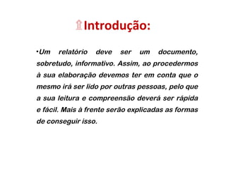 Este documento fornece dicas para elaborar um relatório científico de forma estruturada e de fácil leitura, incluindo usar uma formatação de texto simples, estruturar o relatório em seções lógicas como problema, fundamentação teórica, protocolo, observações, análise de dados e conclusões.