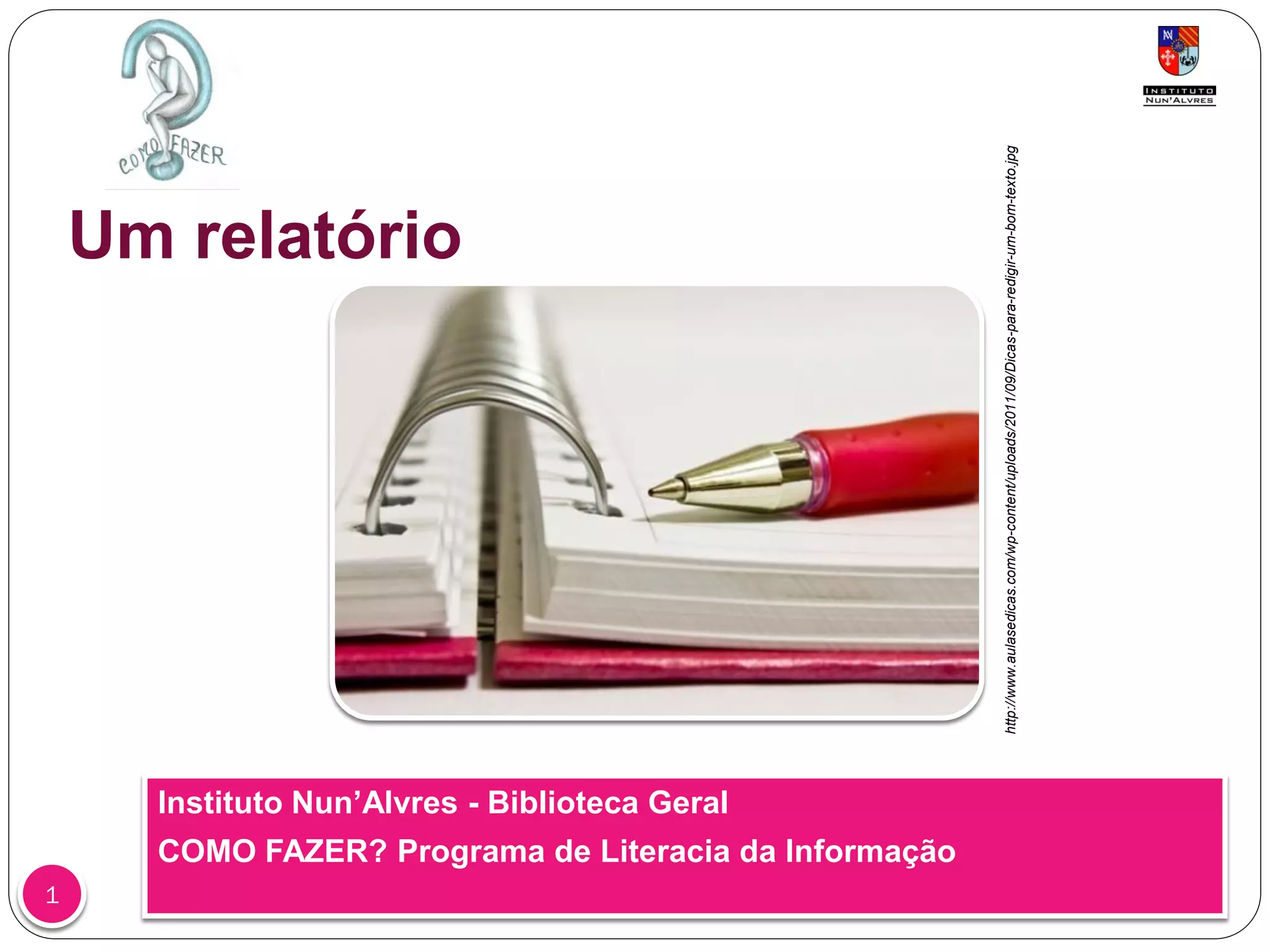 Este documento fornece instruções sobre como redigir um relatório, cobrindo tópicos como normas para relatórios, tipos de relatórios, estrutura, linguagem, apresentação e conclusão. Ele discute as seções-chave de um relatório e fornece diretrizes detalhadas sobre cada uma.