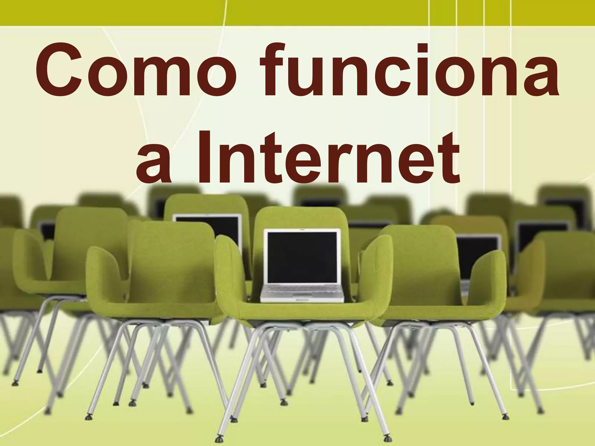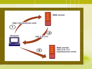 O documento explica como funciona a Internet, incluindo que é uma rede global de computadores que permite o acesso público através de uma infraestrutura de telecomunicações. Detalha como os usuários se conectam através de provedores e a teoria cliente-servidor, além de conceitos como e-mail, protocolos TCP/IP, páginas da web e domínios.