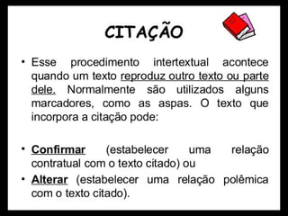 INTERTEXTUALIDADE não demonstrafalta de originalidade, necessariamente, mas, muitas