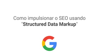 O documento explica como impulsionar o SEO utilizando marcação de dados estruturados ('structured data markup'), que ajuda motores de busca a indexar melhor o conteúdo do site. Apresenta as vantagens dessa técnica, como a exibição de rich snippets e a inclusão no knowledge graph do Google. O uso de padrões do schema.org é destacado como essencial para organizar e classificar conteúdo na web.