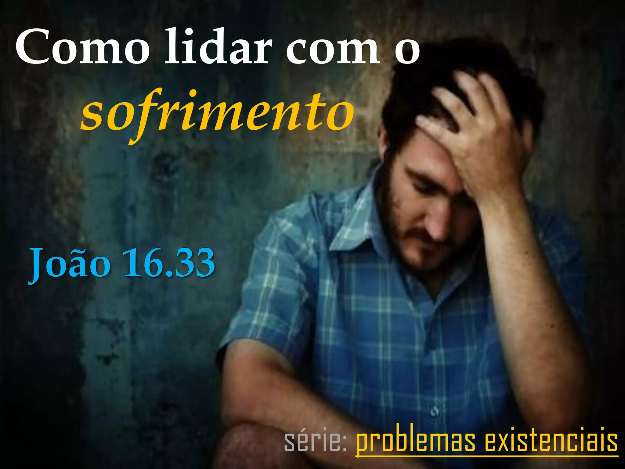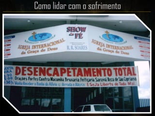 O documento discute como lidar com o sofrimento de acordo com a perspectiva cristã. Ele afirma que sofremos como resultado do pecado e que Deus usa o sofrimento para nos disciplinar e tornar-nos mais santos. Também diz que os cristãos devem buscar a paz em Cristo, ter bom ânimo por causa da fé e sofrer como Cristo sofreu.