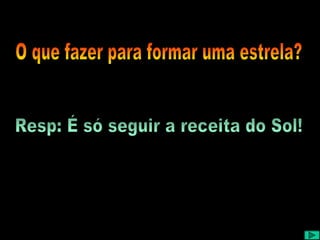 O documento descreve o processo de formação das estrelas a partir de nuvens de gás e poeira interestelar. As estrelas nascem por contração gravitacional dessas nuvens e brilham por milhões ou bilhões de anos até morrerem, originando novas gerações de estrelas.