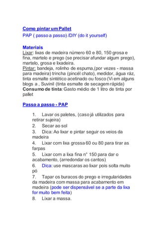 Primeiro, lixe muito, muito mesmo, pois os pallets têm