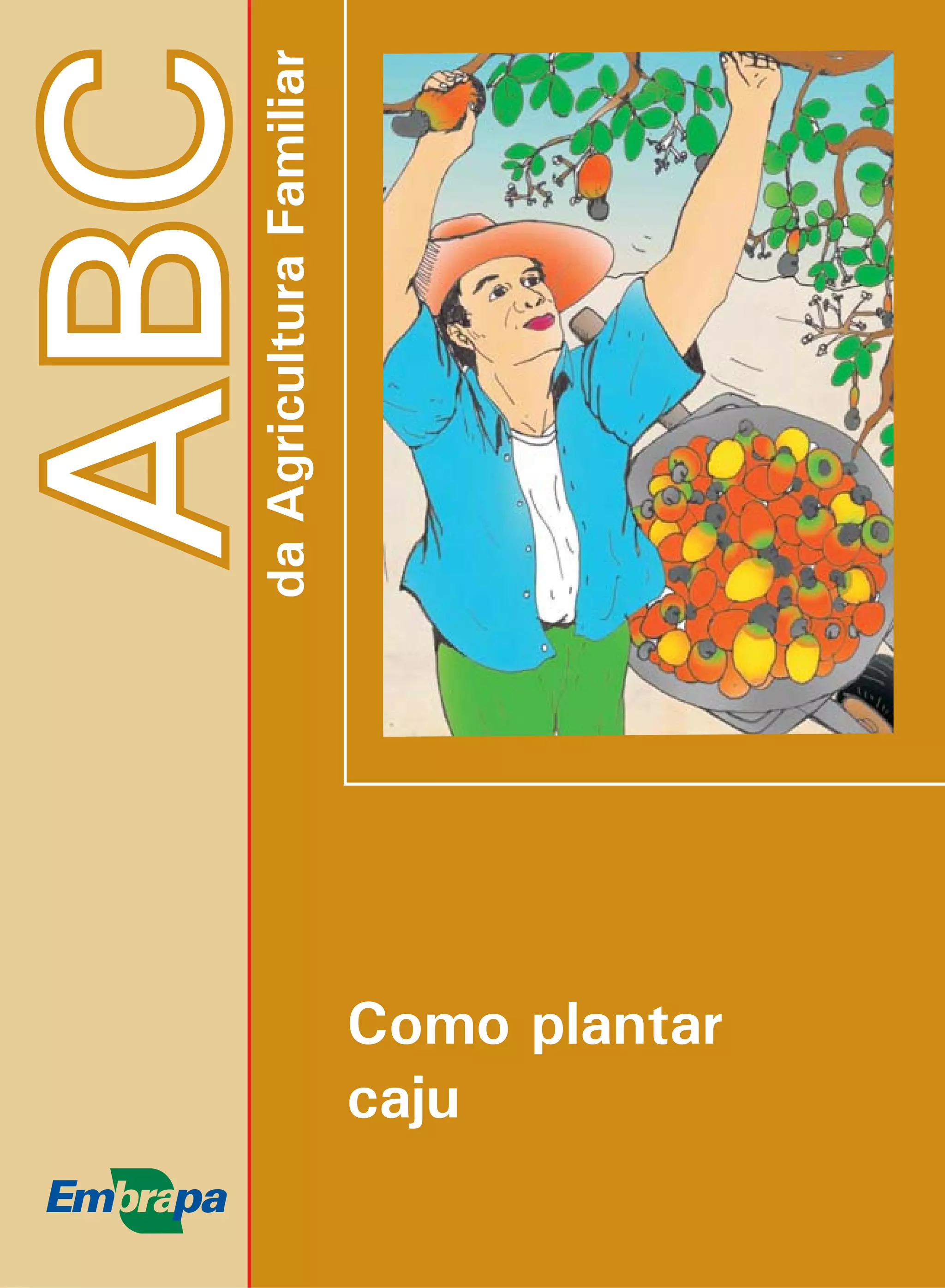 O documento fornece instruções sobre como plantar caju, incluindo a importância do caju, preparo da terra, calagem e adubação, variedades a serem plantadas, como fazer mudas, plantio, consórcio, tratos culturais, doenças e pragas e colheita.