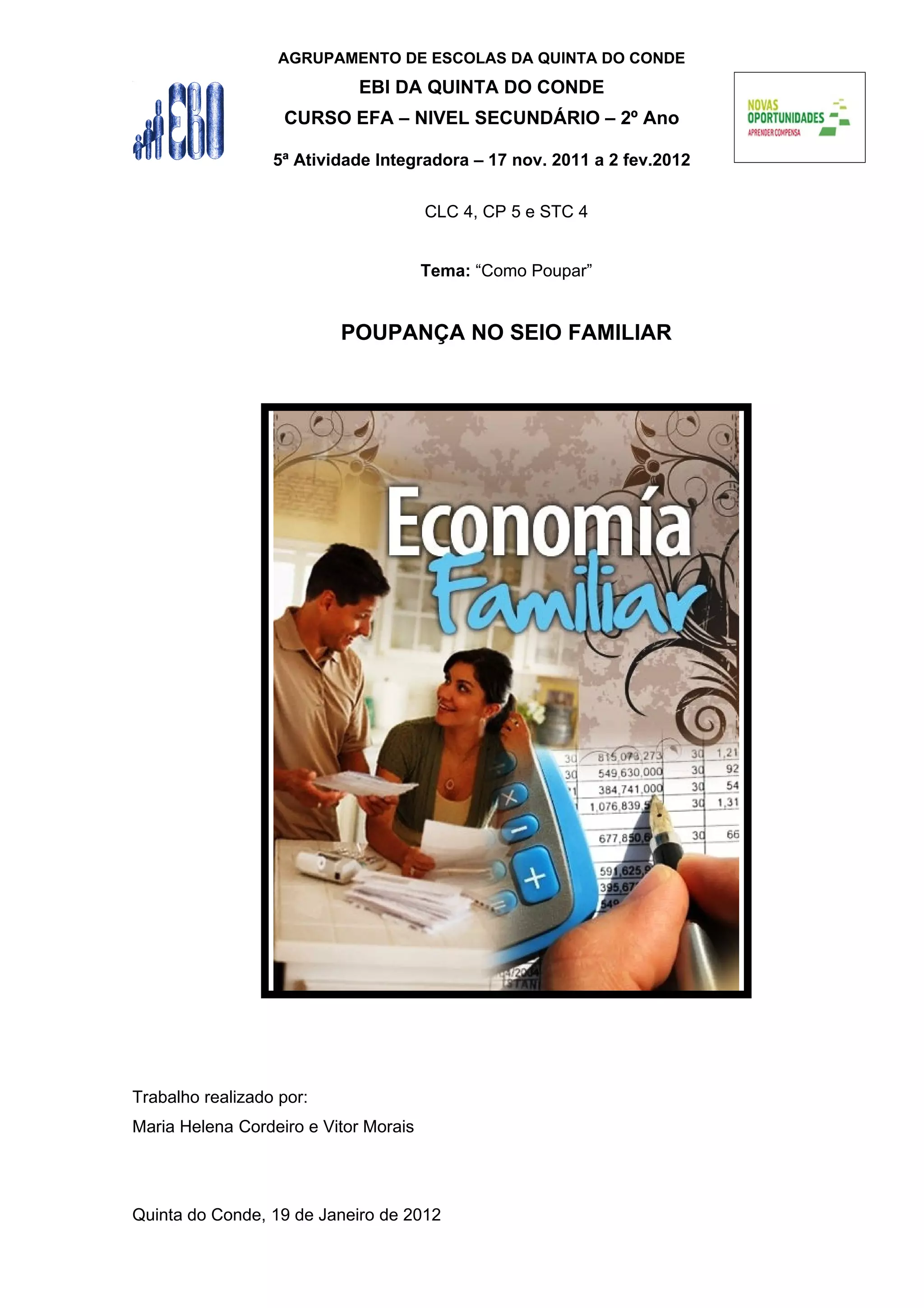 O documento discute estratégias de poupança para famílias, incluindo definir orçamentos, poupar em itens como alimentação, eletricidade e água, e dividir poupanças entre emergências e objetivos de longo prazo. Exemplos e testemunhos ilustram como famílias aplicam estas técnicas dadas suas circunstâncias financeiras.