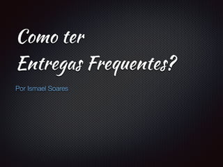 O documento discute como implementar entregas frequentes através da gestão eficiente do fluxo de trabalho. Sugere limitar o trabalho em andamento ("WIP") para evitar gargalos, eliminar filas individuais, criar uma única fila no início do fluxo e separar manutenção de novas funcionalidades. Também recomenda definir critérios claros de conclusão e entregar com frequência para motivar a equipe.