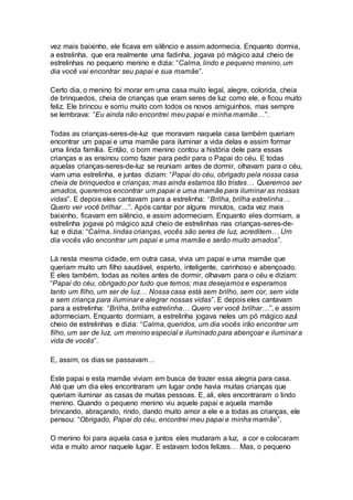 O documento discute como contar histórias para crianças sobre diversidade familiar e adoção. A história narrada descreve a jornada de um menino órfão em encontrar uma família amorosa através da adoção e ajudar outras crianças a também encontrarem seus papais e mamães.