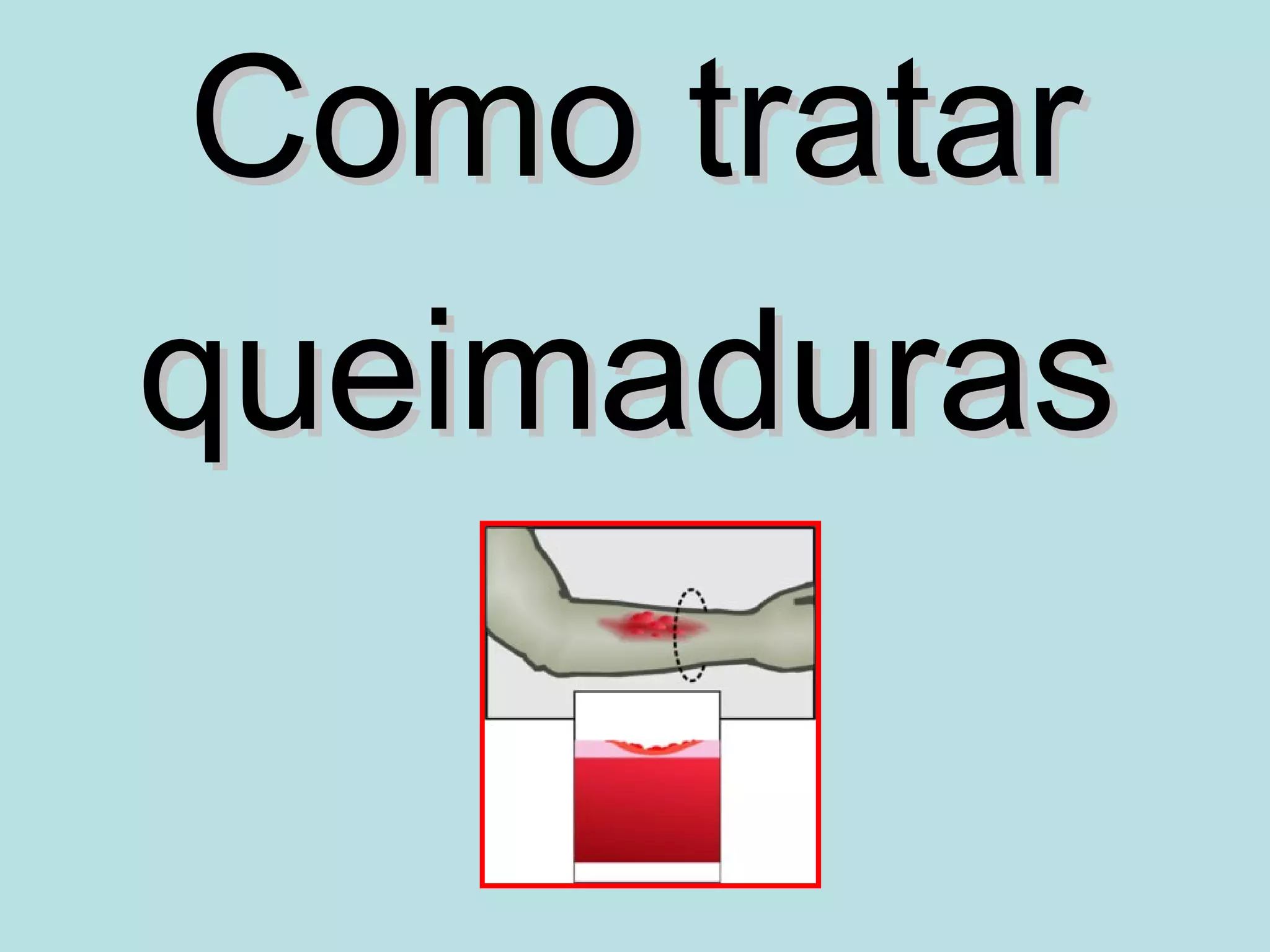 O documento fornece instruções sobre como tratar queimaduras, recomendando colocar a área queimada sob água fria para reduzir o calor e, em seguida, aplicar claras de ovo levemente batidas para facilitar a aplicação e ajudar na cicatrização.