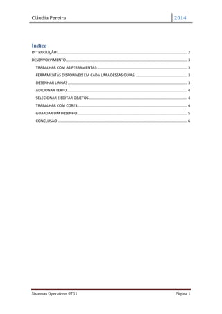 Este documento descreve como usar o software Paint para criar e editar imagens digitais. Explica as ferramentas disponíveis no Paint para desenhar, adicionar texto, selecionar e editar objetos, trabalhar com cores e salvar desenhos. O Paint permite criar imagens simples de forma fácil.