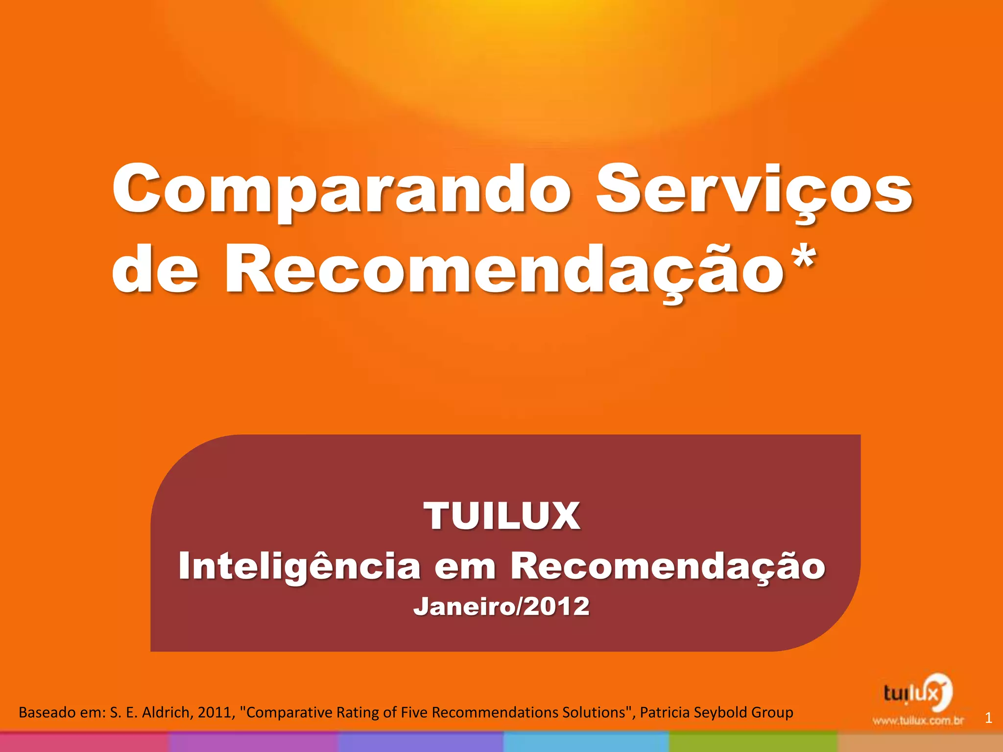 O documento compara serviços de recomendação, discutindo cinco variáveis chave: 1) Informação e acompanhamento; 2) Estrutura e tipos de recomendação; 3) Gerenciamento das recomendações; 4) Integração e operação; 5) Desenvolvimento e manutenção. A eficácia das recomendações é o aspecto mais importante, mas outros fatores como cobertura geográfica e cuidado com clientes também influenciam a decisão de compra.