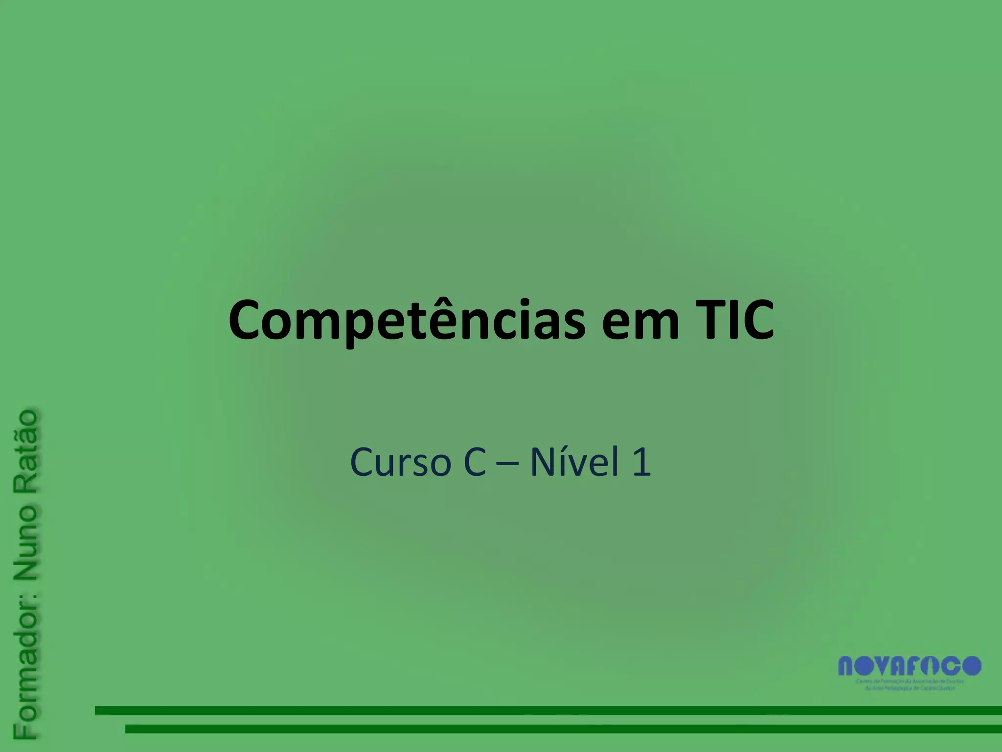 Este documento descreve os objetivos e competências do Curso C - Nível 1 de Competências em TIC. O curso visa desenvolver conhecimentos básicos de TIC, incluindo acesso e uso de informação digital, processador de texto, comunicação online, apresentações e segurança na internet e rede.