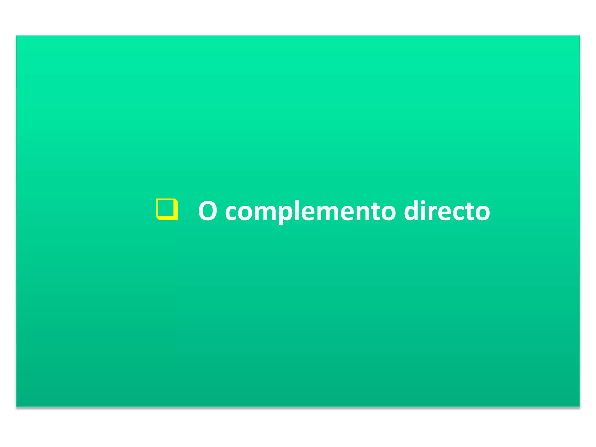 Este documento fornece instruções sobre como identificar e usar complementos diretos em frases. Explica como (1) completar frases com complementos diretos, (2) sublinhar complementos diretos, (3) preencher uma tabela com sujeitos, verbos e complementos diretos, e (4) substituir complementos diretos por pronomes pessoais.
