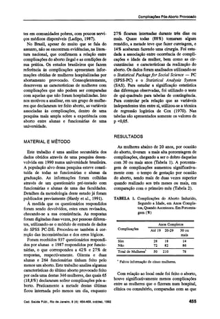 Este documento apresenta os resultados de uma pesquisa sobre fatores associados a complicações após abortos ilegais no Brasil. A pesquisa encontrou que mulheres que tiveram abortos realizados por médicos em clínicas ou hospitais e usando métodos modernos tiveram menos complicações, enquanto abortos feitos em casa ou por não-profissionais tiveram mais complicações. Quanto mais avançada a gravidez no momento do aborto, maior o risco de complicações. Idade mais jovem não esteve associada a mais complicações.