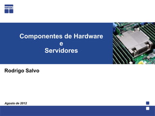 O documento apresenta os principais componentes de hardware de computadores e servidores, incluindo placas-mãe, processadores, memória RAM, discos rígidos e gabinetes. Também discute tipos de servidores, níveis de serviço e atividades práticas de benchmarking.