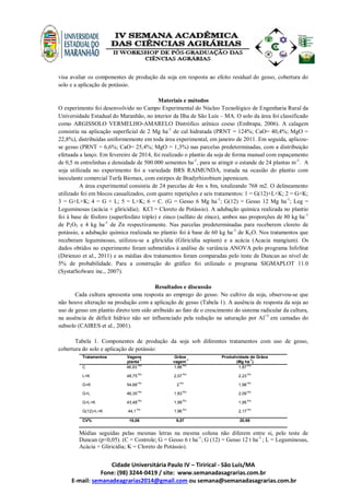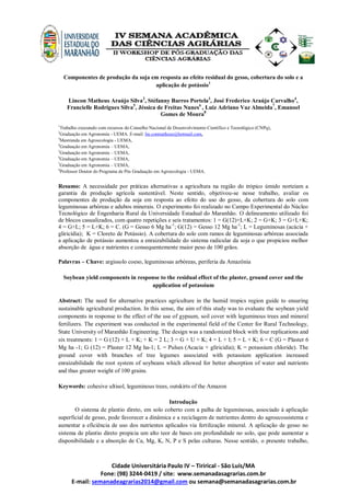 1) O estudo avaliou os componentes de produção da soja sob diferentes tratamentos com uso de gesso, cobertura do solo com leguminosas e aplicação de potássio.