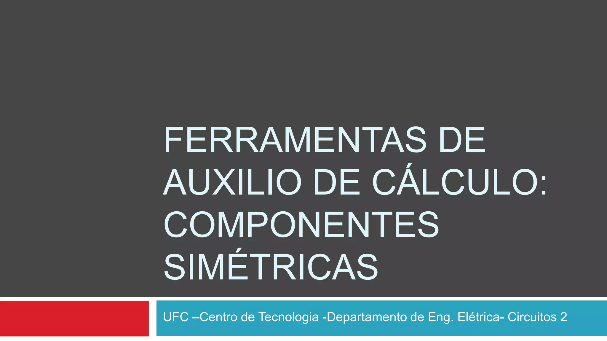 Este documento descreve o método das componentes simétricas para análise de sistemas trifásicos desequilibrados. Ele explica como decompor o sistema em três componentes equilibradas usando operadores de rotação e como calcular as componentes simétricas positiva, negativa e nula. Além disso, apresenta aplicações como tensão entre linhas, tensão de fase em Y, transformações Y-Δ, correntes trifásicas e potência.