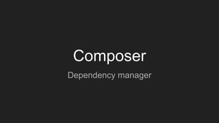 O documento apresenta uma palestra sobre o Composer, uma ferramenta para gestão de dependências em projetos PHP, abordando desde a instalação até a criação e distribuição de pacotes. É discutido como o Composer facilita a gestão de dependências, reduzindo o esforço de versionamento, e são explorados conceitos como composer.json e versionamento semântico. Também são fornecidas orientações práticas para o uso do Composer em ambientes de desenvolvimento e produção.