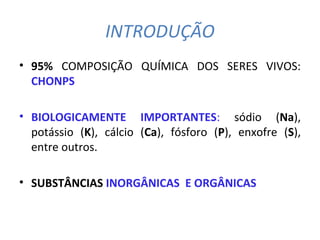Os principais componentes químicos das células são: