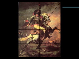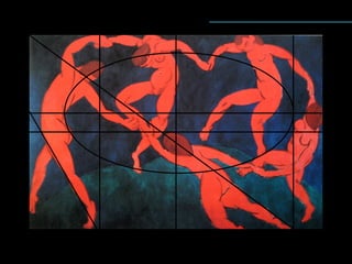 O documento discute os conceitos-chave da composição em artes visuais, incluindo elementos como forma, espaço, linha, cor, textura e equilíbrio. A composição é definida como a organização destes elementos dentro de um campo visual para criar coerência e sentido. Regras como a regra dos terços e o número de ouro são abordadas como formas de criar composições harmônicas e equilibradas.