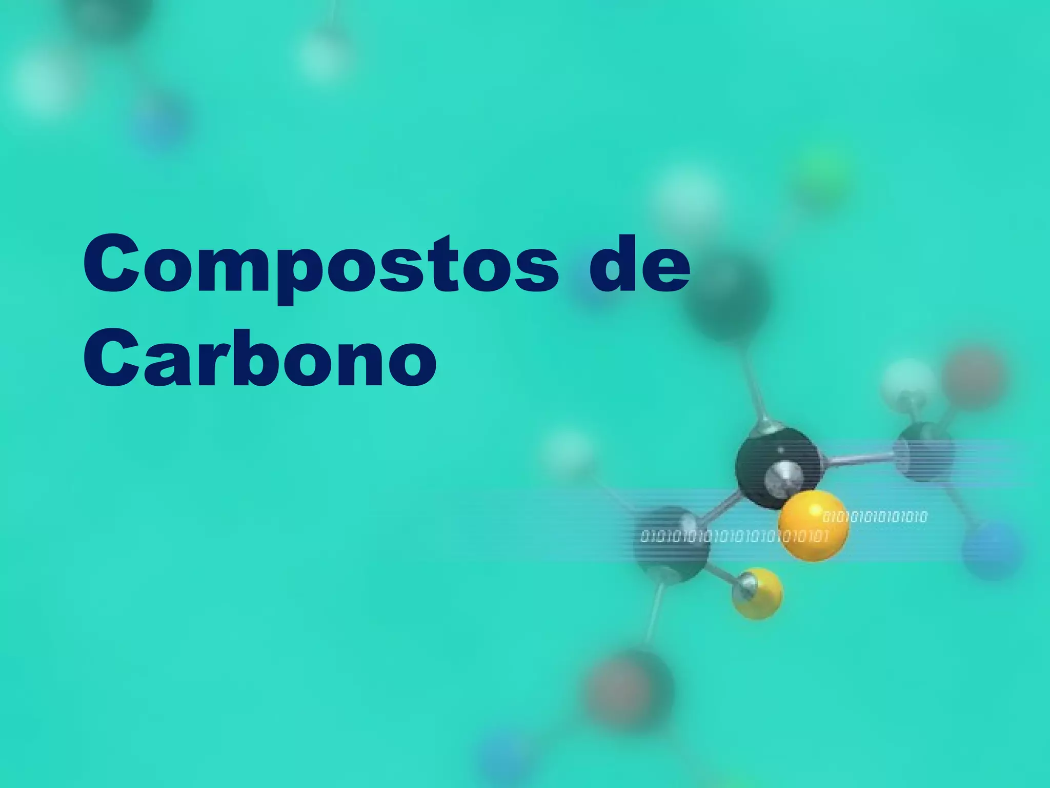 O documento discute os compostos de carbono, incluindo exemplos de estruturas orgânicas e suas aplicações. Aborda hidrocarbonetos saturados e insaturados, grupos funcionais como álcoois, aldeídos, cetonas, éteres, ácidos carboxílicos e suas aplicações.
