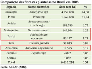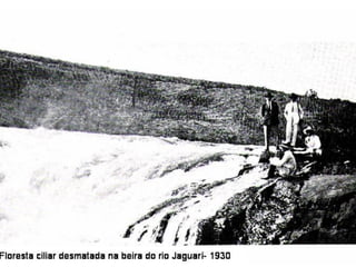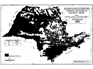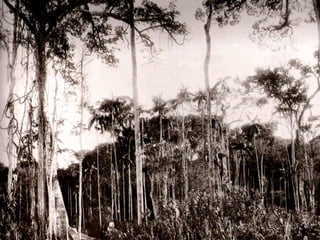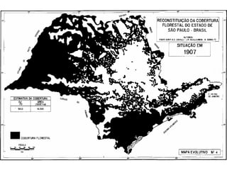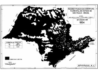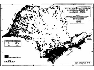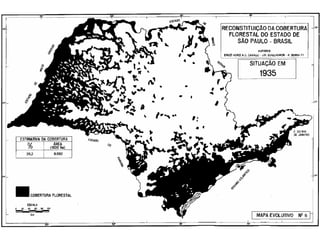 O documento descreve a história da destruição da Mata Atlântica brasileira desde a era pré-colonial, destacando os principais ciclos econômicos que impulsionaram o desmatamento, como o pau-brasil, cana-de-açúcar, ouro e café. Também discute os desafios atuais da restauração florestal e da conservação da biodiversidade na Mata Atlântica.