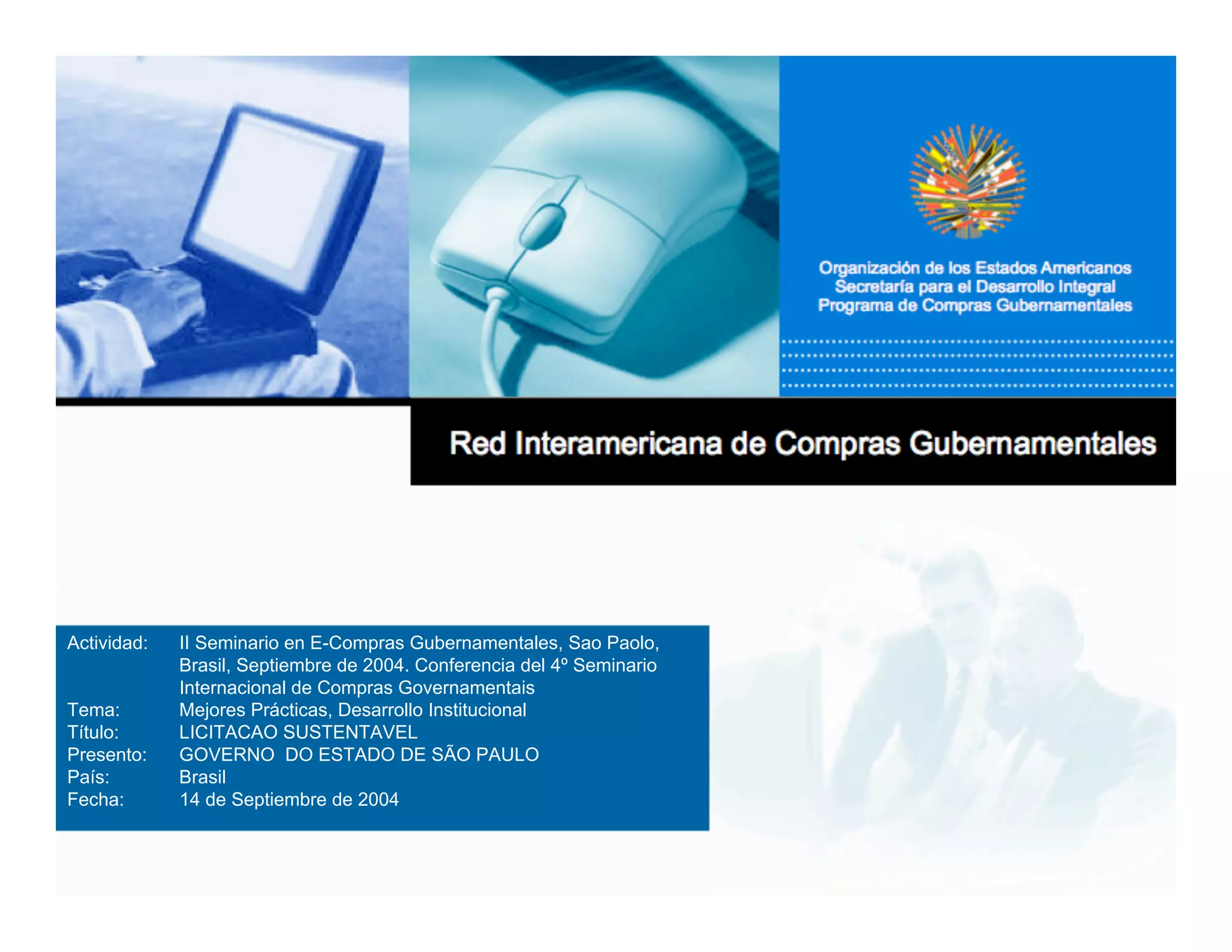 O documento discute a implementação de uma política de compras públicas sustentáveis no Brasil através da especificação de requisitos ambientais nos editais de licitação e da proibição de empresas poluidoras contratarem com o governo. Ele também menciona a criação de um grupo técnico pelo governo de São Paulo para assessorar a introdução de critérios ambientais nas contratações públicas.