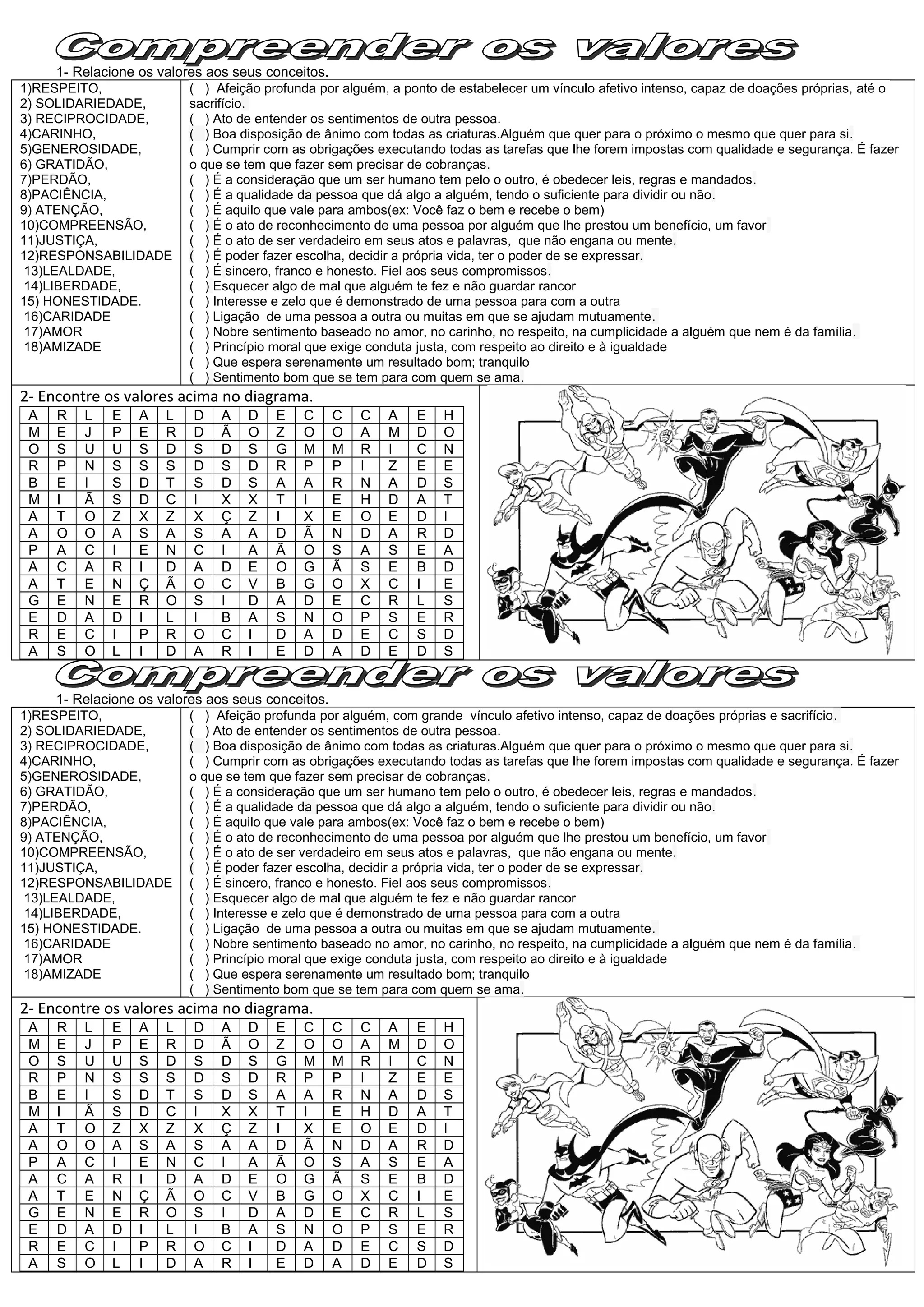 1- Relacione os valores aos seus conceitos.